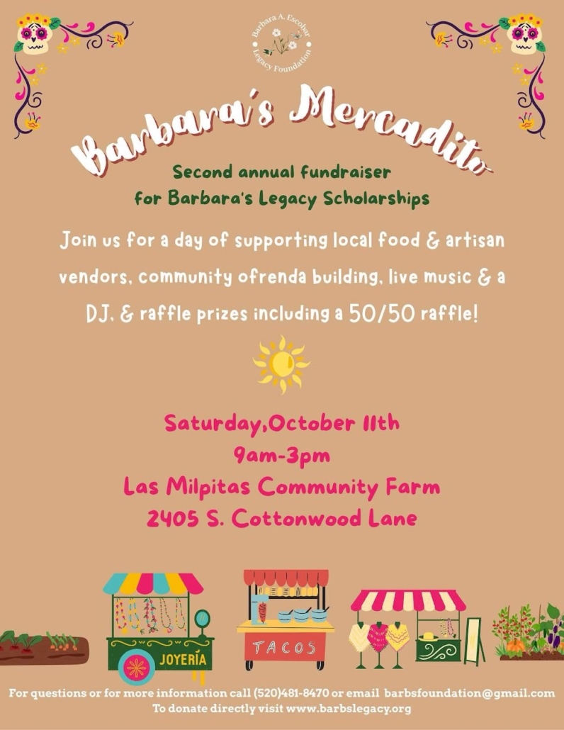 Our second annual Barbara’s Mercadito is right around the corner. Please join us in raising funds for our next scholarship recipients. We just granted two scholarships for the fall semester and now looking to the future recipients.